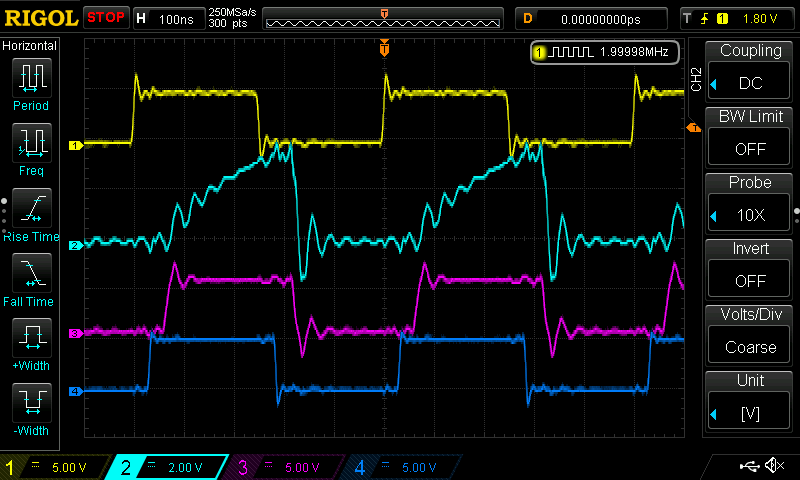 Here is a comparision of M2(CH1), pin 56(CHR2), pin55 (CH3), pin54 (CHR4).