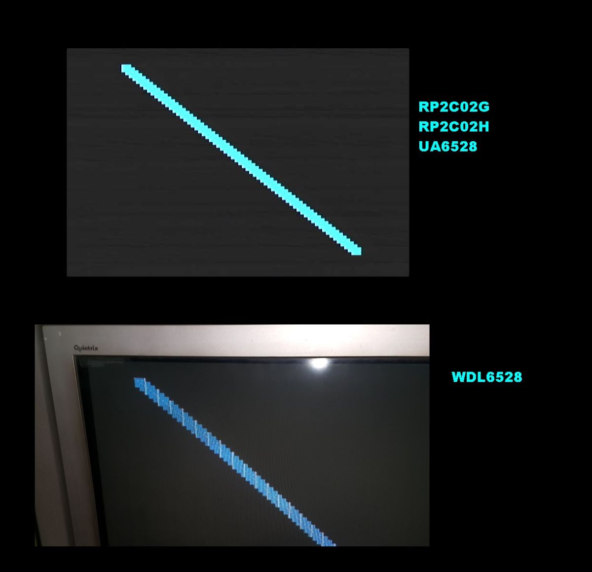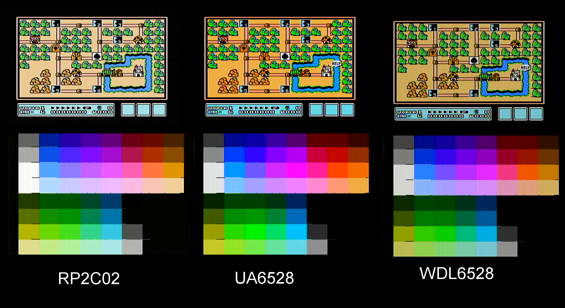 After comparing all those 3 PPus - RP2C02GH has the brightest image (=highest voltage), WDL6528 the darkest (=lowest).