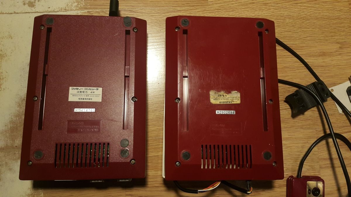 The famicom needed much more interest, its bottom is smooth (right), not like most (left) of the famicoms I met before.